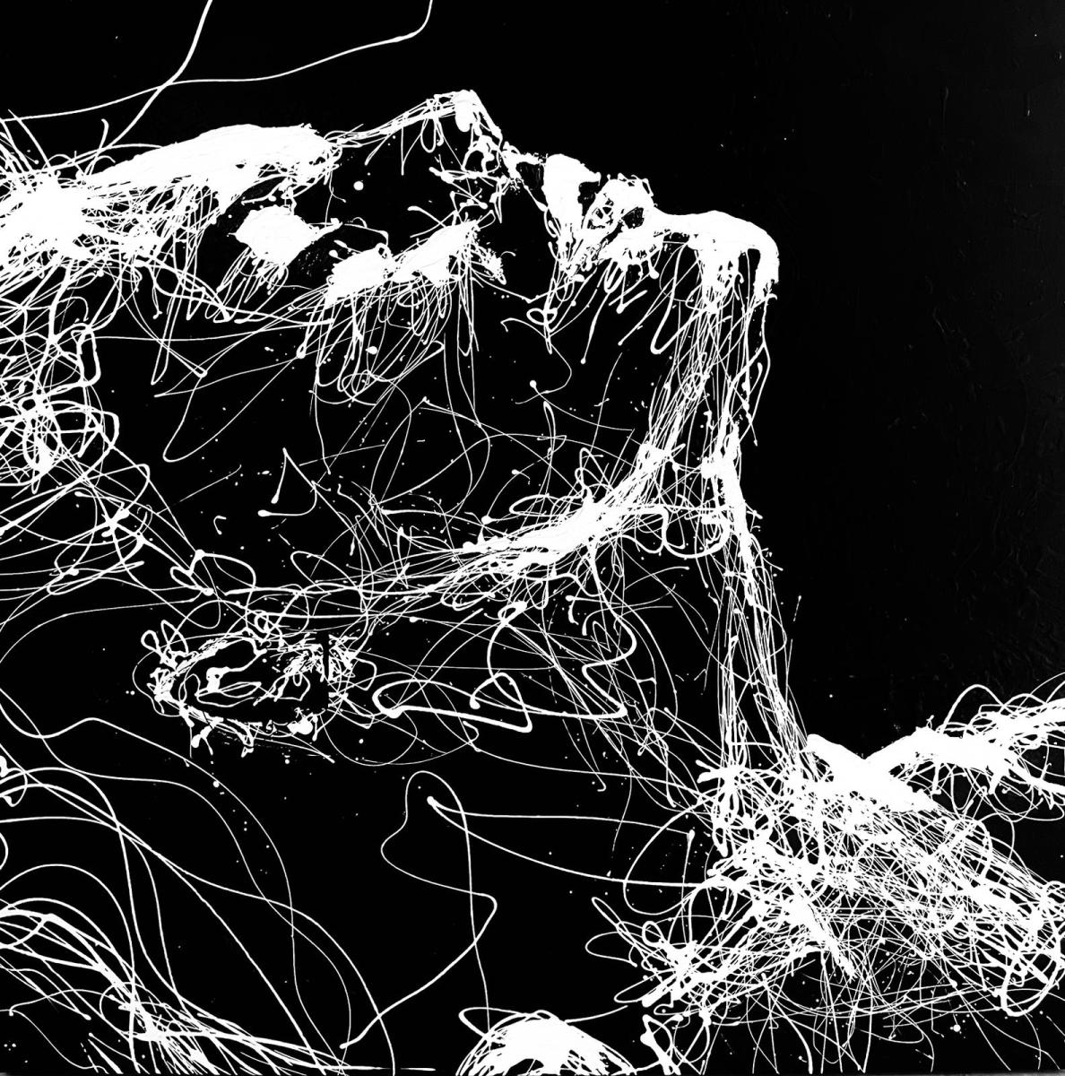 Note curatoriale : LA FEMME 4 se distingue par une figure plus fragmentée, presque dissoute dans l’espace pictural. Le corps apparaît par zones, comme suspendu, laissant de larges respirations noires autour de lui. Le geste est plus étiré, plus aérien, donnant à la composition une sensation de flottement et d’instabilité. La matière blanche semble glisser sur la surface, soulignant la fragilité de la silhouette et son rapport à l’espace. L’œuvre évoque une présence en transition, un corps en mouvement qui oscille entre ancrage et disparition.