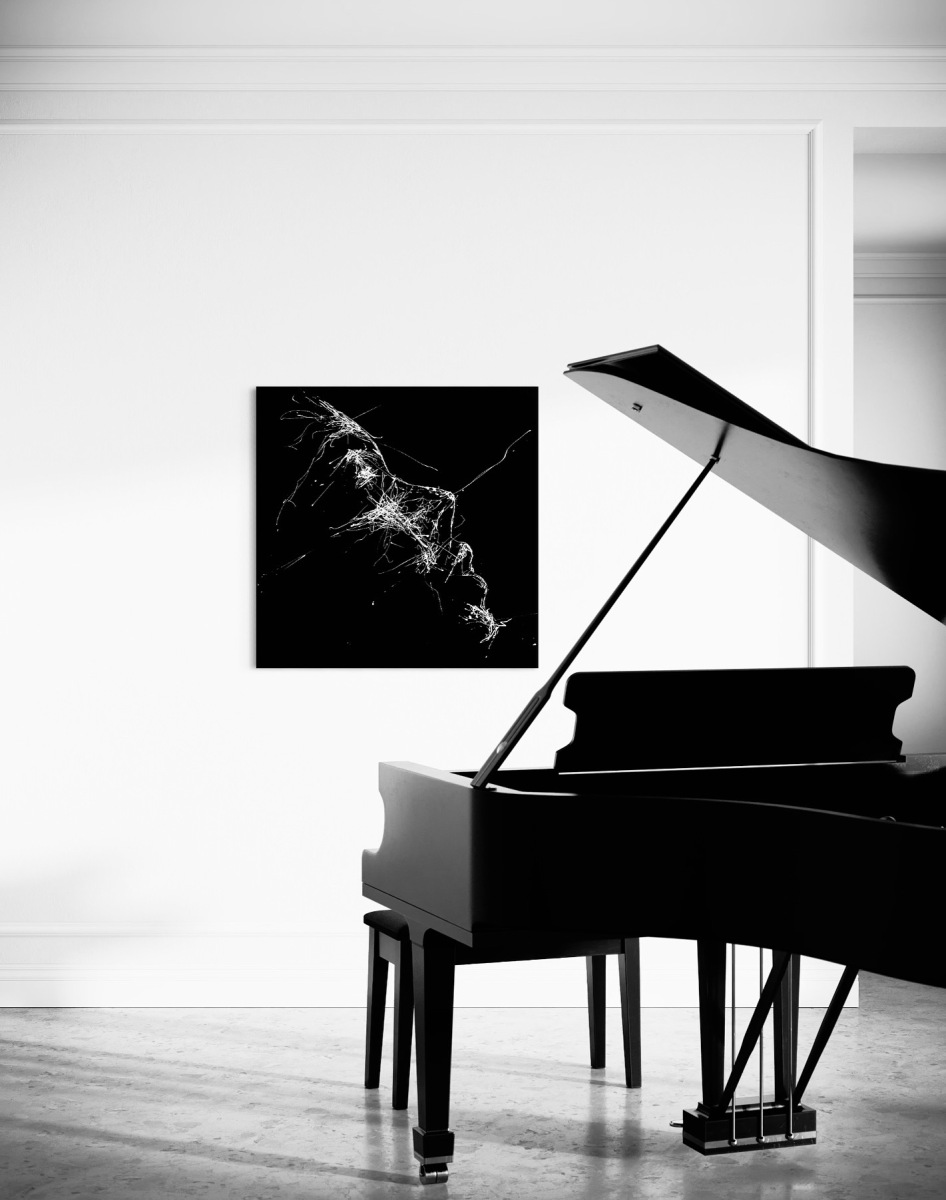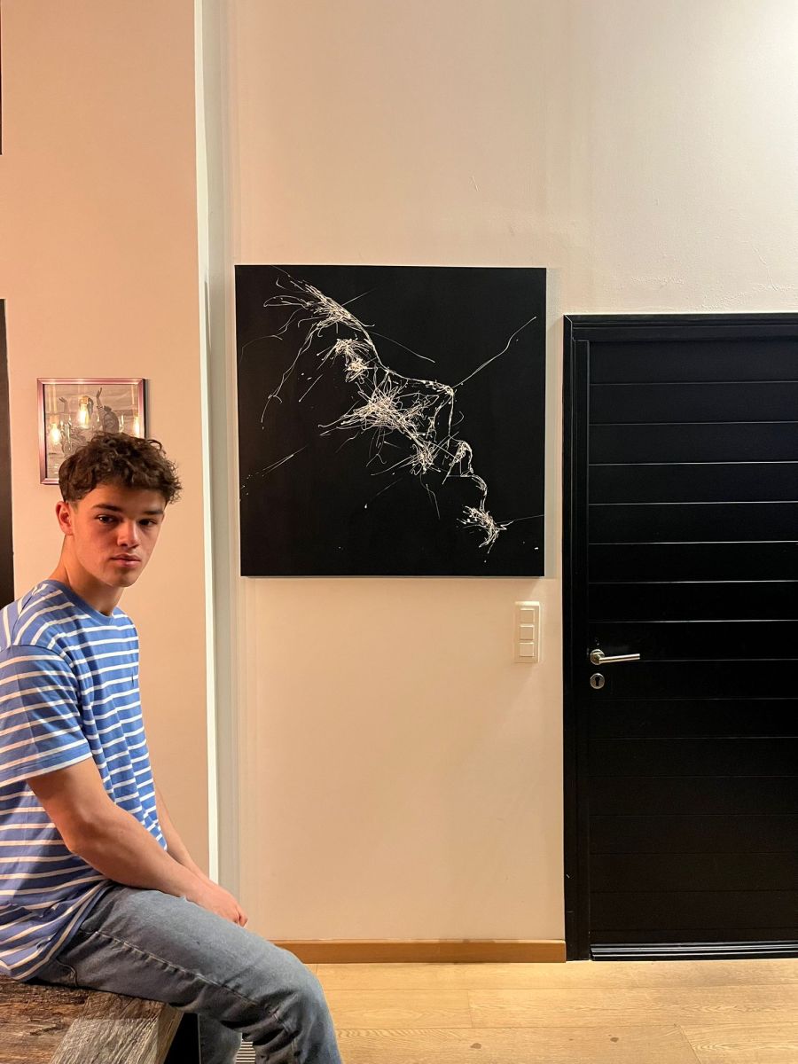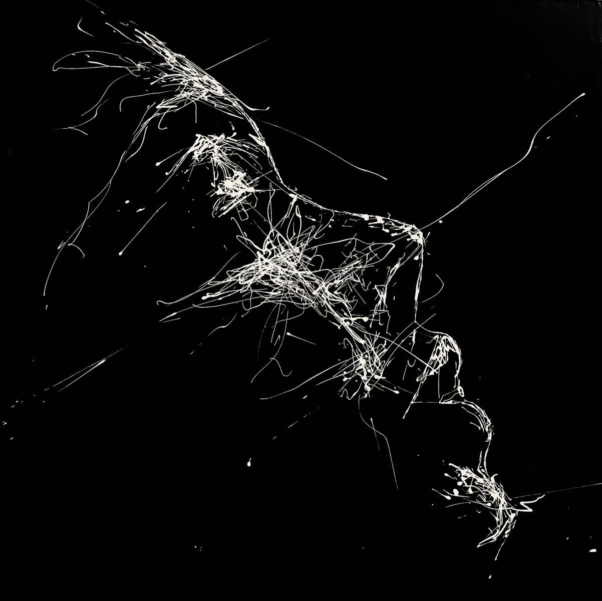 Note curatoriale : Cette œuvre explore la tension entre abstraction et figuration à travers un dialogue radical entre peinture blanche brillante et noir mat. Le noir absorbe l’espace et installe une profondeur silencieuse, tandis que le blanc surgit par le geste, traçant une énergie vive et instinctive. Les formes, volontairement ambiguës, oscillent entre mouvement, fragmentation et apparition de figures suggérées. Le tableau invite ainsi le regard à naviguer entre reconnaissance et abstraction, laissant place à une interprétation libre et sensible.